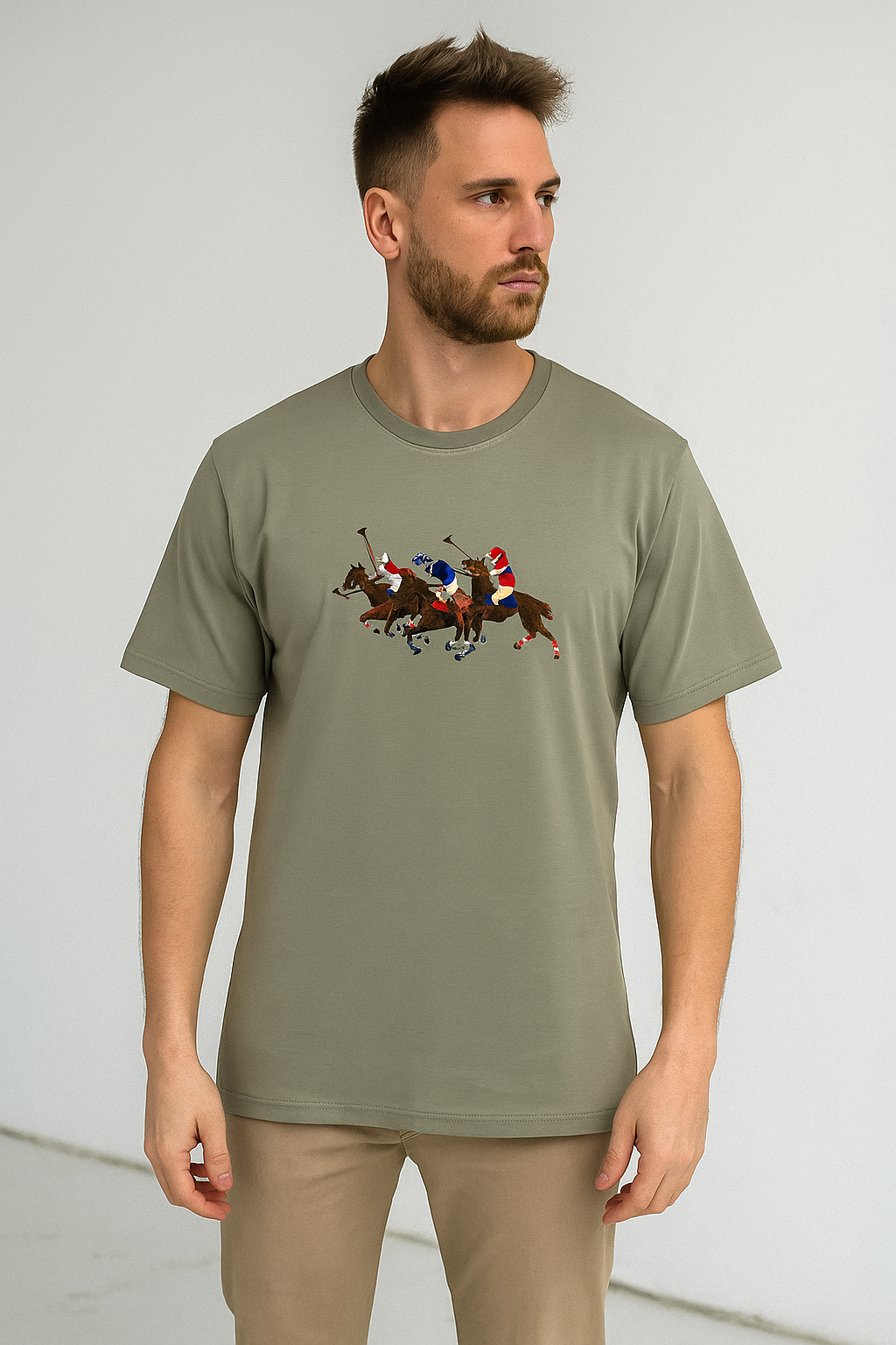 Men’s Light Green Beige Polo Player Graphic T-Sh...