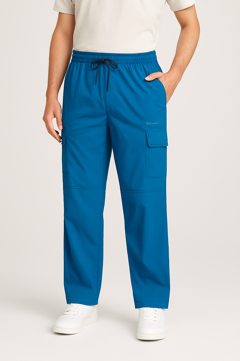 Men’s Blue Slim-Fit Beige Drawstring Joggers
